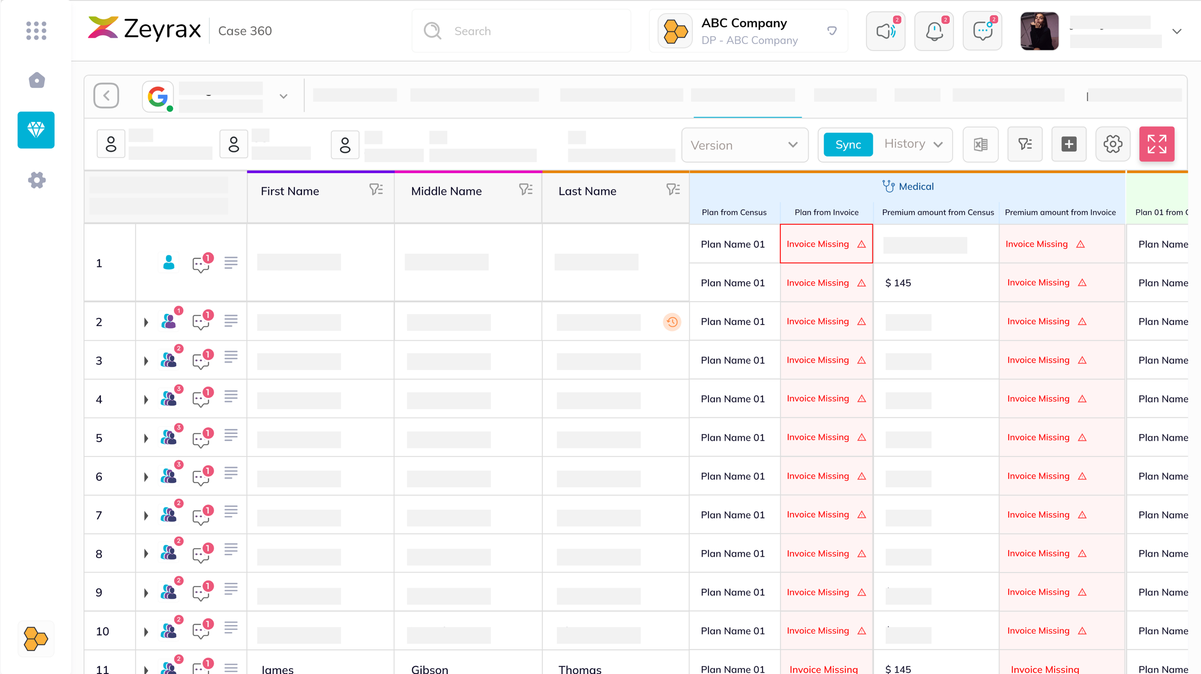 Auto-matches census files and invoices to quickly spot coverage differences, missing data, or errors.